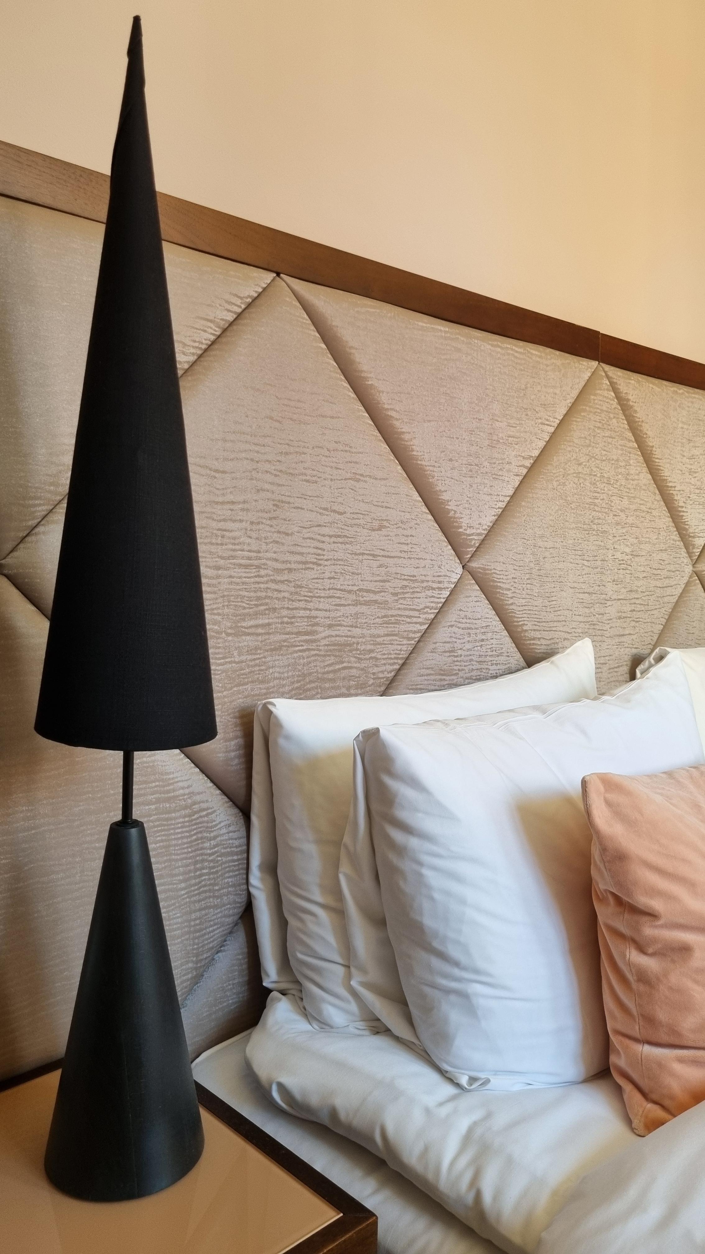 Štíhlá kuželovitá silueta v minimalistickém černém provedení